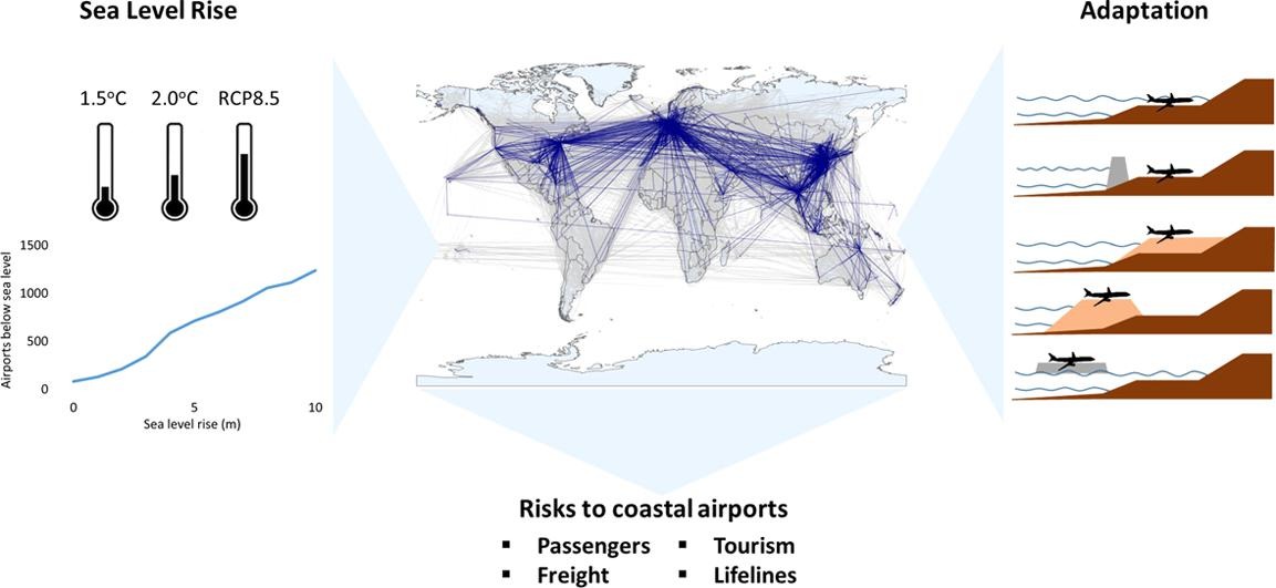 They found that 269 airports are at risk of coastal flooding now. A temperature rise of 2C – consistent with the Paris Agreement - would lead to 100 airports being below mean sea level and 364 airports at risk of flooding. If global mean temperature rise exceeds this then as many as 572 airports will be at risk by 2100, leading to major disruptions without appropriate adaptation.