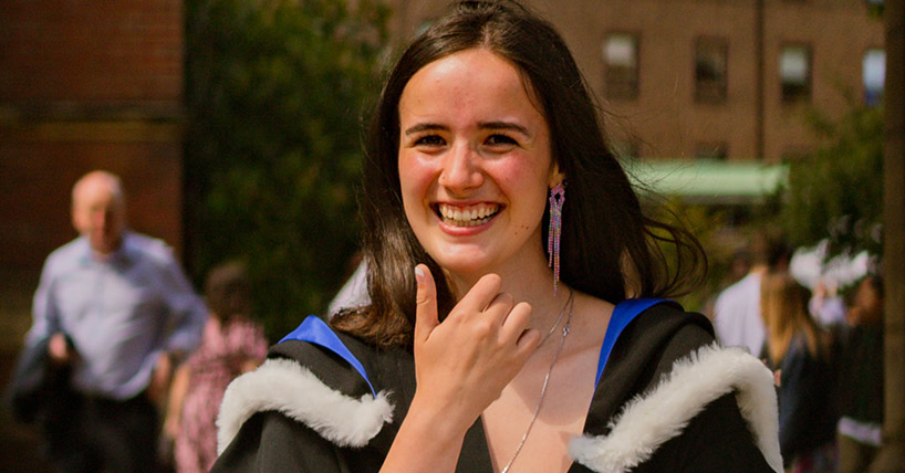 However, by her third year, Kez found that huge support of a good group of friends and the University meant she had a feeling of belonging and finally enjoyed her studies, graduating with a first-class honours degree.