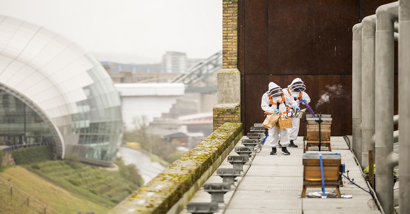 NEYDL Is an award-winning parenting support charity that works with marginalised and disadvantaged young dads in the North East of England. Following a successful urban beekeeping pilot, 20 young men not in education or employment worked with a million bees in Gateshead, including looking after hives on the south-facing rooftop at Baltic overlooking a post-industrial landscape rich in wild and planted forage. Since then, many of the young dads have progressed into volunteering and paid work.